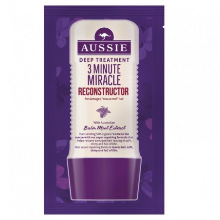 Aussie 3 Minute Miracle Reconstructor Sachet's unique formula, with Australian Balm mint extract, helps mend split ends and roughened cuticles. It helps transform dry, damaged hair into manageable and shiny locks in just 3 minutes. Australian Balm mint is so amazing that the bloke who brought it back from Australia called it "the elixir of life".