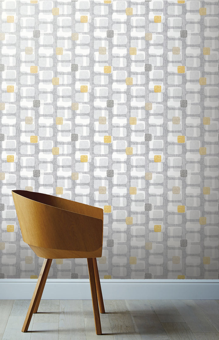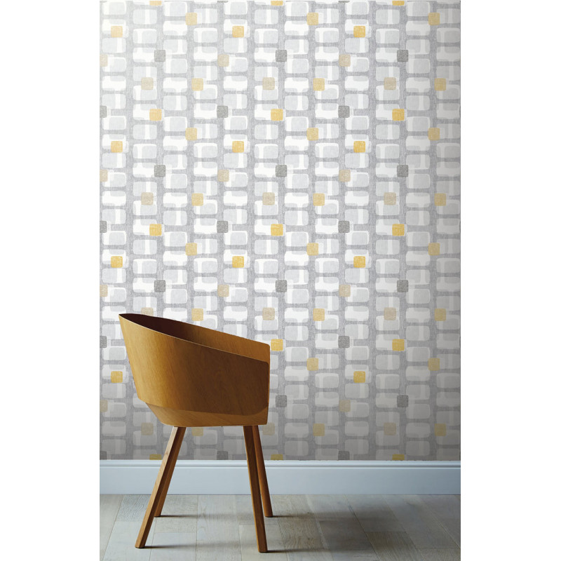 Arthouse Retro Block Ochre and Grey - Wallpaper